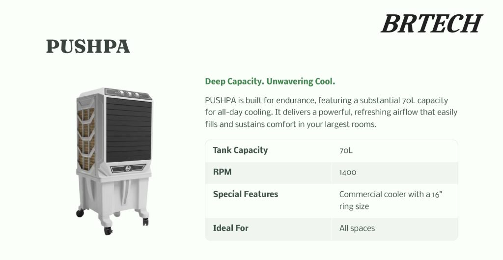 Posted inBRTECH DOMESTIC COOLERS BRTECH PUSHPA TOWER COOLER Posted by BRTECH INDIA March 3, 2026No CommentsPosted inBRTECH DOMESTIC COOLERS BRTECH INDIA View All Posts Post navigation Previous Post ENERGY EFFICIENT INDUSTRIAL COOLING SOLUTIONNext PostBRTECH HAWA TOWER COOLER